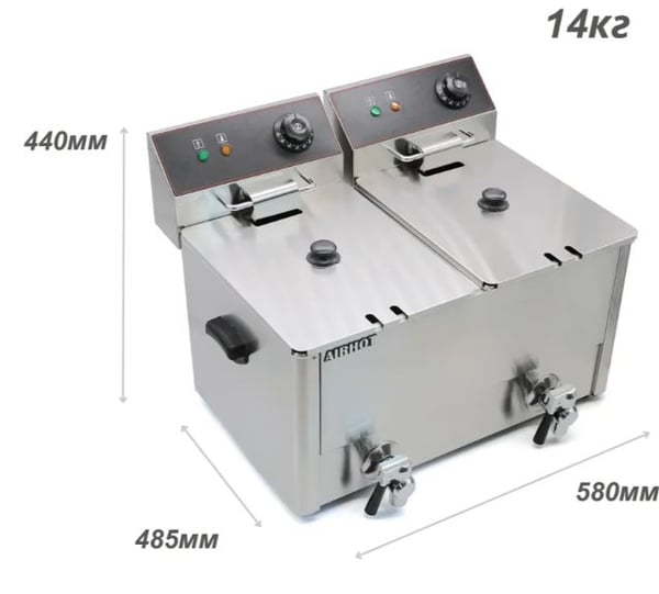 Фритюрниця Airhot EF12+12 з двома ваннами - це професійне кухонне обладнання, яке дозволяє обсмажувати різноманітні кулінарні вироби шляхом занурення їх у великий обсяг гарячого масла. В результаті приготування, страва набуває хрусткої золотавої скоринки, при цьому зберігає досить вологості і виходить особливий ароматний смак.