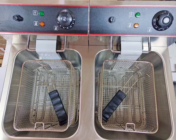 Двопостова фритюрниця складається з ємностей, які щільно накриваються кришкою, знімним кошиком і блоком управління.