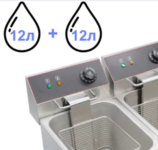 Фритюрниця має 2 ванни об'ємом по 12 літрів кожна:
