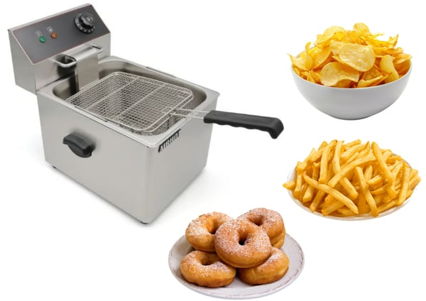 Фритюрниця – це професійне кухонне обладнання, яке дозволяє обсмажувати різноманітні кулінарні вироби шляхом занурення їх у великий об'єм гарячої олії. В результаті приготування, страва набуває хрумкої золотистої скоринки, при цьому зберігає достатньо вологості і виходить особливий ароматний смак.