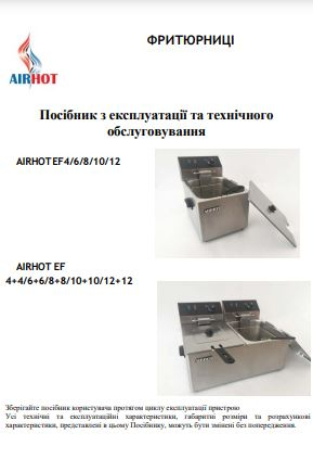 Однопостова фритюрниця складається з ємності, яка щільно накривається кришкою, знімним кошиком і блоком управління.