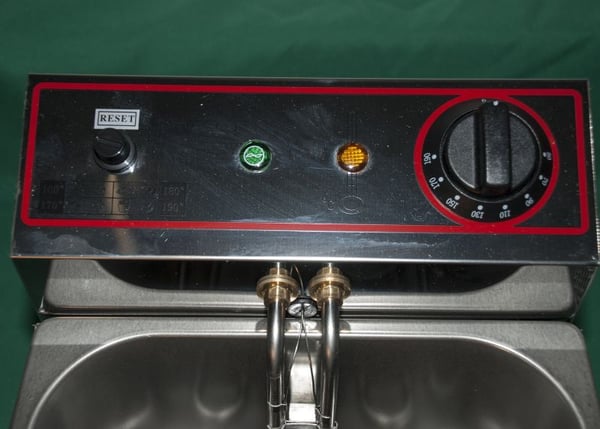 Електронна панель управління знаходиться з фронтального боку апарату. Вмикається фритюрниця терморегулятором, плавне регулювання нагріву від +50 до +190°С.