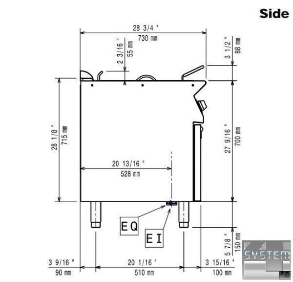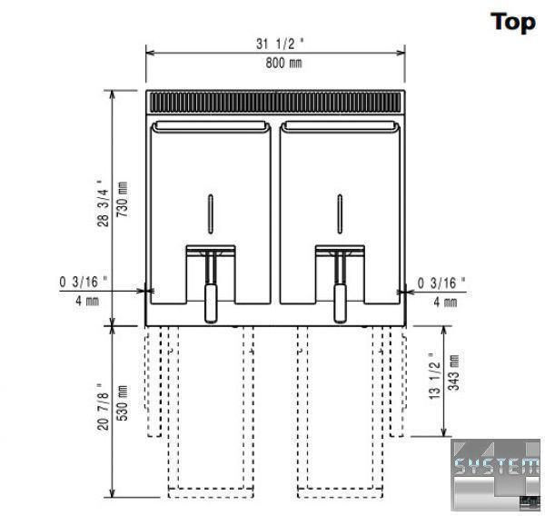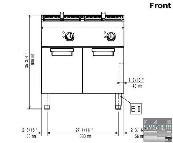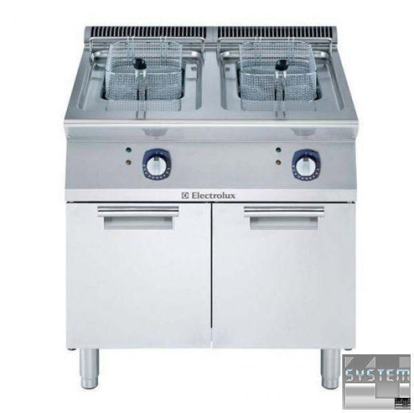 Електрична фритюрниця Electrolux e7freh2gf0 має дві ванни об'ємом по 15 Lt маx та 13 л min. Регулювання температури 105-185 ° С, глибока холодна зона, термостат безпеки, отвір для зливу олії, в комплекті два кошики, виконання на закритій підставі, товщина металу робочої поверхні 1,5 мм. Фритюрниця має габаритні розміри: 800мм (довжина), 730мм (глибина), 850мм (висота) та важить 81кг. Пристрій живиться від трифазної мережі з напругою 400В та частотою 50 Гц.