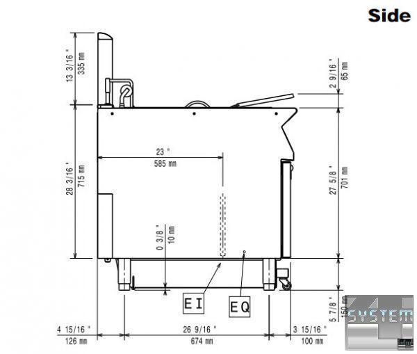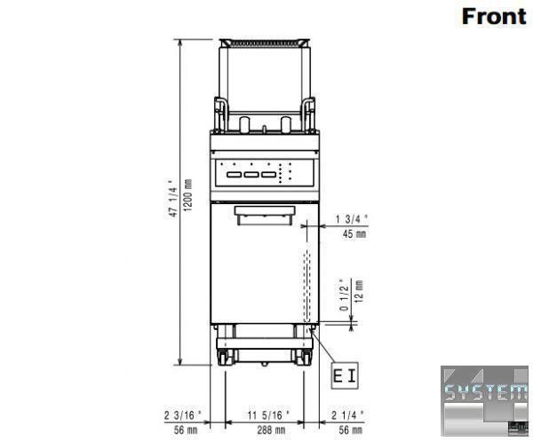 Електрична фритюрниця Electrolux e9fred1jfe має одну ванну V-подібної форми об'ємом 23л max і 21л min з електронним контролем , регулювання температури 110...185°С, інфрачервоні нагрівальні елементи, термостат безпеки, вбудований фільтр олії, в комплекті з двома кошиками. та контейнером для збирання жиру, виконання на закритій підставі. Робоча поверхня завтовшки 2мм з нерж. харчової сталі AISI304 з поліруванням Scotch Brite . Фритюрниця з базою має габаритні розміри: 400мм (довжина), 930мм (глибина), 850мм (висота) та важить 86кг. Пристрій живиться від трифазної мережі з напругою 400В та частотою 50 Гц.