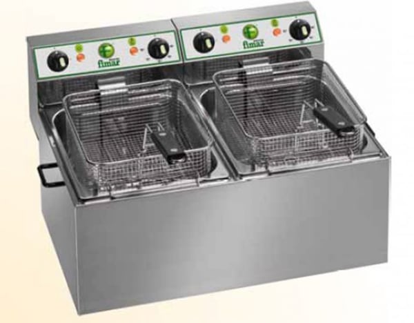Двопостова фритюрниця складається з ємності, яка щільно накривається кришкою, знімним кошиком і блоком управління. Дана модель з двома ваннами кожна на 4 літри.