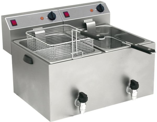Фритюрниця з двома ваннами – це професійне кухонне обладнання, яке дозволяє обсмажувати різноманітні кулінарні вироби шляхом занурення їх у великий об'єм гарячої олії. В результаті приготування страва набуває хрумкої золотистої скоринки, при цьому зберігає достатньо вологості і виходить особливий ароматний смак.