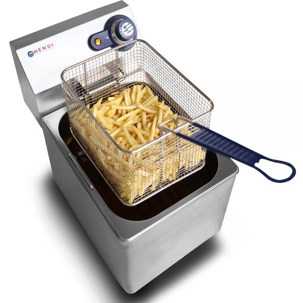 Фритюрниця Hendi 205822 - професійний кухонний апарат, який дозволить обсмажити різноманітні кулінарні вироби шляхом занурення їх у великий об'єм гарячої олії. В результаті приготування, страва набуває хрумкої золотистої скоринки, при цьому зберігає достатньо вологості і виходить особливий ароматний смак. Даний апарат використовують у кафе, барах, ресторанах та фаст-фудах для приготування різних страв: чипсів, картоплі фрі, грибів, овочів, м'яса, риби (у клярі та без нього), курячих ніжок та крилець, біляшів, пончиків, пиріжків.