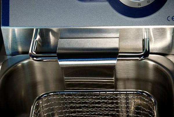 Корпус та робочі деталі виконані з нержавіючої сталі. Сталеві міцні кошики обладнані термоізольова-ною ручкою. Апарат легко розкладається для санітарної обробки.