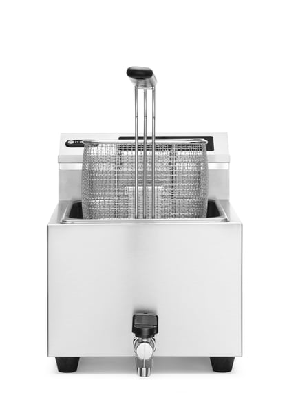 Фритюрниця Hendi 207369 - професійний кухонний апарат, який дозволить обсмажити різноманітні кулінарні вироби шляхом занурення їх у великий об'єм гарячої олії. В результаті приготування, страва набуває хрумкої золотистої скоринки, при цьому зберігає достатньо вологості і виходить особливий ароматний смак. Даний апарат використовують у кафе, барах, ресторанах та фаст-фудах для приготування різних страв: чипсів, картоплі фрі, грибів, овочів, м'яса, риби (у клярі та без нього), курячих ніжок та крилець, біляшів, пончиків, пиріжків.