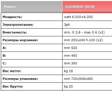 Місткість двох ванн, об'єм яких становить по 10 літрів – від 3,8 до 6л. Напруга – 380 В.