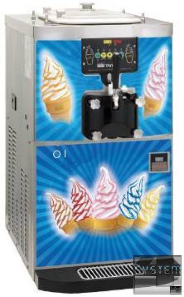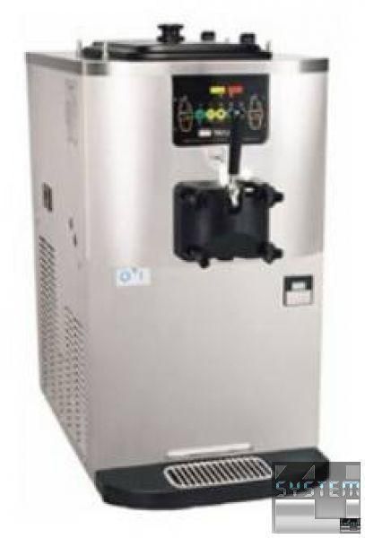 Фризер имеет простое и удобное электронное управление, которое защищает от заклинивания шнека, повышает удобство и надежность использования. Точный термостат обеспечивает поддержание на выходе из цилиндра заданной температуры мороженого. Простой в процессе обработки поверхности и мытья. Готовая смесь проникает в цилиндр под действием гравитации, после заливки ее в емкость для предварительного охлаждения. Двигатель вращает шнек, увлекающий смесь для смешивания. При каждом обороте вала, нож соскабливает замерзшую смесь со стенок цилиндра. Признаком готового к употреблению продукта является его кремообразная консистенция. Время застывания смеси в цилиндре составляет 10-20 минут. Контроль температурного режима позволяет оператору видеть когда продукт достигает нужной консистенции. Через раздаточный клапан с рычагом, готовое мороженое подается наружу. Продавец придает ему нужную форму путем круговых движений. Вместительный цилиндр обеспечивает высокие темпы производства мороженного. Для разнообразия мороженного можно использовать различные сиропы или наполнители – (ореховый, шоколадная крошка).