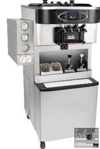 Фризер имеет простое и удобное электронное управление, которое защищает от заклинивания шнека, повышает удобство и надежность использования. Точный термостат обеспечивает поддержание на выходе из цилиндра заданной температуры мороженого. Простой в процессе обработки поверхности и мытья. Готовая смесь проникает в цилиндр под действием гравитации, после заливки ее в емкость для предварительного охлаждения. Двигатель вращает шнек, увлекающий смесь для смешивания. При каждом обороте вала, нож соскабливает замерзшую смесь со стенок цилиндра. Признаком готового к употреблению продукта является его кремообразная консистенция. Время застывания смеси в цилиндре составляет 10-20 минут. Контроль температурного режима позволяет оператору видеть когда продукт достигает нужной консистенции. Через раздаточный клапан с рычагом, готовое мороженое подается наружу. Продавец придает ему нужную форму путем круговых движений. Вместительный цилиндр обеспечивает высокие темпы производства мороженного. Для разнообразия мороженного можно использовать различные сиропы или наполнители – (ореховый, шоколадная крошка).