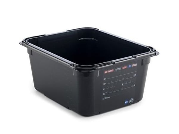 Пластикова харчова ємність Araven – міцна та ударостійка, виготовлена з чорного полікарбонату без вмісту канцерогену бісфенолу A. Харчова ємність дуже стабільна завдяки посиленим кутам, а також при правильному використанні стійка до корозії. Продукт, поміщений у гастроємність, можна закрити відповідною герметичною кришкою.