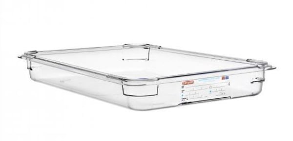 Гастроємності GN1/1 (харчові ємності, контейнери для зберігання їжі) використовуються для приготування, зберігання та транспортування страв як на підприємствах громадського харчування (ресторани, супермаркети, кафе, їдальні, фаст-фуди), так і на домашніх кухнях. Завдяки уніфікованим розмірам підходять для використання в мікрохвильових печах та для всіх видів холодильного обладнання (демонстрації у вітринах, морозильних та холодильних шафах). Гастроємності з полікарбонату відрізняються легкістю, зручністю у використанні та догляді. Прозорі стіни дозволяють легко побачити та знайти необхідний продукт. Ємності легко миються, не тріскаються і не гнуться. Витримують перепади температури від -40 до +90 °С. Контейнер відповідає санітарним нормам здорового зберігання їжі. Стійкий до механічних пошкоджень, не дряпається, б'ється, не вбирає запахи. Підходить як для ручного, так і для машинного миття.
