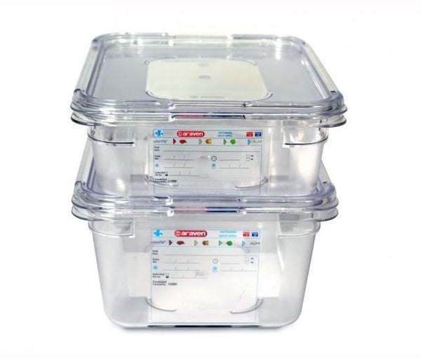 Важливими відмінними рисами гастроємностей Araven є: можливість укладати в стопки та наявність спеціальної етикетки, яка дозволяє легко наносити та стирати записи маркером, що особливо важливо для зручнішого контролю за зберіганням продуктів. До кожної гастроємності можна придбати герметичну кришку відповідного розміру.