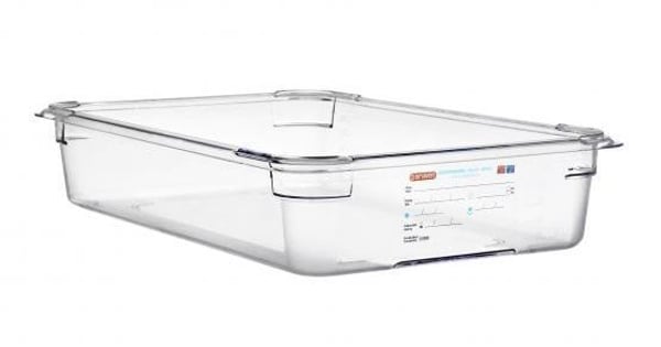 Гастроємності GN1/1 (харчові ємності, контейнери для зберігання їжі) використовуються для приготування, зберігання та транспортування страв як на підприємствах громадського харчування (ресторани, супермаркети, кафе, їдальні, фаст-фуди), так і на домашніх кухнях. Завдяки уніфікованим розмірам підходять для використання в мікрохвильових печах та для всіх видів холодильного обладнання (демонстрації у вітринах, морозильних та холодильних шафах). Гастроємності з полікарбонату відрізняються легкістю, зручністю у використанні та догляді. Прозорі стіни дозволяють легко побачити та знайти необхідний продукт. Ємності легко миються, не тріскаються і не гнуться. Витримують перепади температури від -40 до +90 °С. Контейнер відповідає санітарним нормам здорового зберігання їжі. Стійкий до механічних пошкоджень, не дряпається, б'ється, не вбирає запахи. Підходить як для ручного, так і для машинного миття.