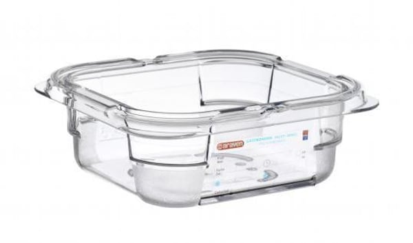 Важливими відмінними рисами гастроємностей Araven є: можливість укладати в стопки та наявність спеціальної етикетки, яка дозволяє легко наносити та стирати записи маркером, що особливо важливо для зручнішого контролю за зберіганням продуктів. До кожної гастроємності можна придбати герметичну кришку відповідного розміру.