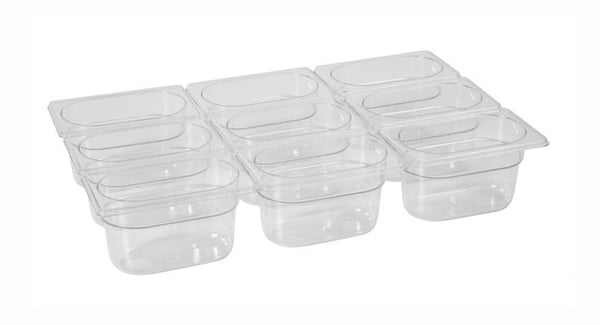 Гастроємність для зберігання харчових продуктів виготовлена з прозорого полікарбонату. Прозора гастроємність дуже міцна і стійка до ударів, не вбирає запах і смак продуктів. Гастроємність для ресторану має мірну шкалу на стінці, також вона безпечна для здоров'я навіть за високої температури до 110°С.