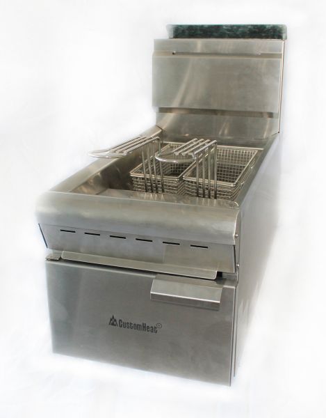 Фритюрниця газова має два пальники, виготовлена із нержавіючої сталі, компактний розмір. Корисний об'єм фритюрниці – 8,5 літрів. Висувний лоток для зміни олії. Задня стінка висока.