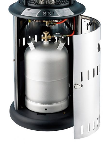 Ще однією особливістю обігрівача є його здатність складатися і набувати компактного вигляду до 118 см за висотою, для зручності зберігання та транспортування. Доступ до газового балона обмежується за допомогою дверцят, що закриваються на замок.