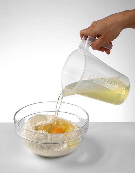 Форма ручки дозволяє штабелювати одну склянку мірну зі шкалою на іншу.