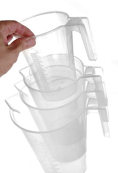 Форма ручки дозволяє штабелювати одну склянку мірну зі шкалою на іншу.