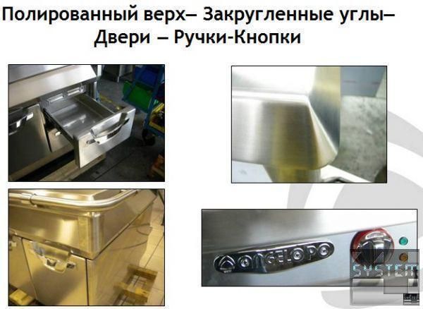 Сквозное нижнее отделение из нержавеющей стали AISI 304, толщиной 10/10 мм с закругленными нижними углами, с двух сторон закрыто стенками, а с двух оборудовано дверями.