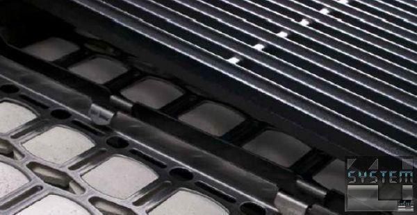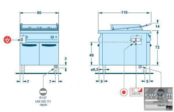 Нагрев происходит благодаря тройному безупречному пламени из двух независимых стальных горелок (каждая нагревает половину поверхности) управляемых клапаном безопасности, пилотом и термопарой. Горелки нагревают керамическую поверхность камней для отражения тепла. Наклоненная решетка из чугуна со специальной эмалировкой для передачи продукту наивысшей температуры. Под решетками ванна для удобства удаления жидкости и дыма. Регулируемый термостат. Термостойкие ручки.