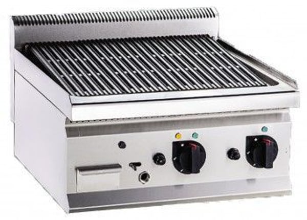 Корпус виконаний з високоякісної нержавіючої сталі, рифлені решітки виготовлені з чавуну, присутній жироуловлювач. Терморегулятор дає змогу регулювати температуру двох зон нагріву.