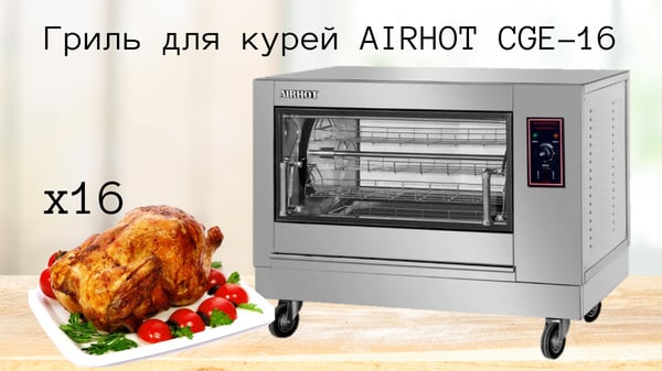 Гриль для курей AIRHOT CGE-16 ідеально підходить для приготування курчат, стегенець, крилець та грудок. Автоматизований процес смаження робить його зручним у використанні. Електричний гриль для курей люлечного типу використовують для смаження та підігріву м'яса, риби, птиці, ковбасних виробів. Компактний, легкий, з невеликим споживанням електроенергії, гриль призначений для невеликих магазинів, кафе, точок вуличної торгівлі та фаст-фуд, супермаркетів тощо.