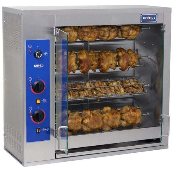 Гриль для курей розрахований на завантаження від 16-24 курей та дозволяє готувати великих курей вагою до 1,8 кг.