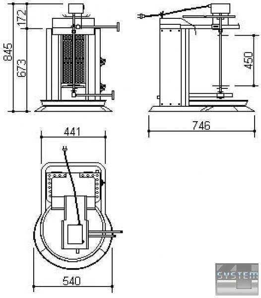 Вертел з н/с розміром 12*12*585 мм. Можливість керування нагрівальними приладами окремо зі збільшенням/зниженням потужності.