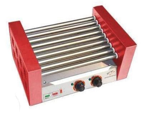 Гриль роликовий Inoxtech HDG 009 служить для обсмажування сосисок, сардельок та ковбасок для хот-догів у фаст-фудах. У роликах знаходяться ТЕНи, температура яких регулюється перемикачем на передній панелі. Сосиски поміщаються між роликами і рівномірно обсмажуються завдяки їхньому обертанню. Жир стікає із сосисок у піддон під роликами, який легко витягується для очищення. Гриль простий у користуванні, конструкція полегшує санітарно-гігієнічну обробку.