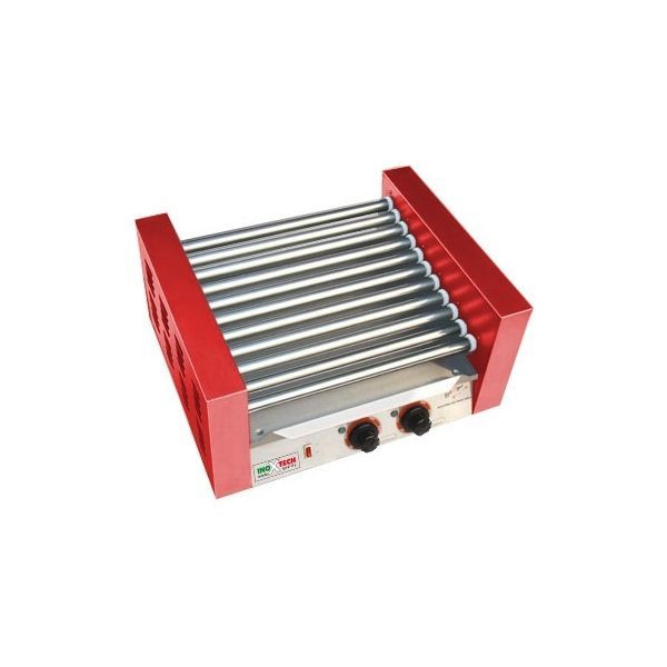Гриль роликовий Inoxtech HDG 011 служить для обсмажування сосисок, сардельок та ковбасок для хот-догів у фаст-фудах. У роликах знаходяться ТЕНи, температура яких регулюється перемикачем на передній панелі. Сосиски поміщаються між роликами і рівномірно обсмажуються завдяки їхньому обертанню. Жир стікає із сосисок у піддон під роликами, який легко витягується для очищення. Гриль простий у користуванні, конструкція полегшує санітарно-гігієнічну обробку.