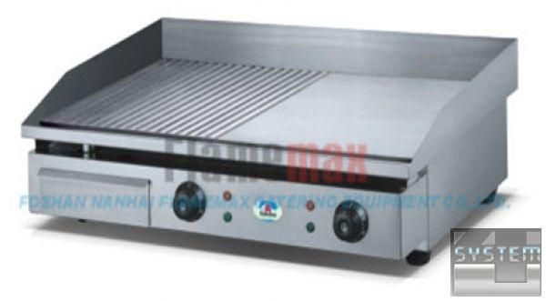 Електричний прилад для приготування їжі на олії або неї. Корпус з нержавіючої сталі, комбінована поверхня з нержавіючої сталі, підданої піскоструминній обробці, термостати для регулювання температури +50°...+270 °C, піддон для збору жиру. Існує можливість незалежного регулювання та включення половини жарочної поверхні.