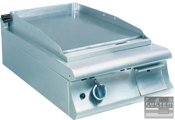 Основна частина зроблена з сатинованого хромонікелевого листа 18/8 н/с, а внутрішні приладдя – з алітованої сталі. Попереду жарочної поверхні знаходиться канал для збору олії та випускний отвір. Зібране з поверхні масло стікає у висувну скриньку, яку легко чистити. Є борти з трьох сторін для того, щоб запобігти розплескуванню жиру під час смаження. Окреме управління жаровні за допомогою 2 окремих ручок. Газові втулки з факелом, мінімальне/максимальне полум'я і термореле; у разі згасання полум'я газовий вентиль припиняє подачу газу. Газові пальники нержавіючої труби придатні для використання різного типу газу. Кнопка автоматичного запалювання. Може бути використаний СНД чи природний газ, і перетворення відбувається без будь-якої модифікації. Придатна для багатофункціонального використання із шафою (з дверима або без) або на консолі для встановлення ізольованого типу.