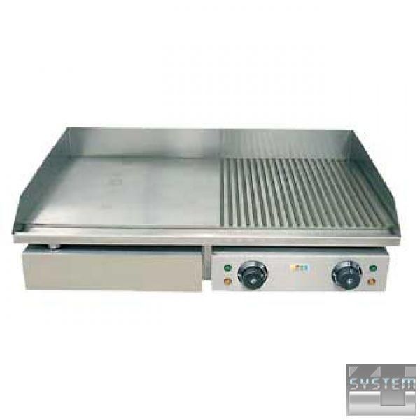 Поверхня гриля забезпечена по периметру бортиками для запобігання розбризкуванню жиру і жирозбірником.