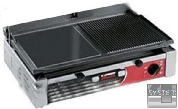 - 2 регулируемых термостата до 300 °C., которые позволяют использовать отдельно две половины гриля
