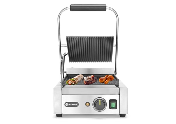 Електричний однопостовий контактний гриль використовують для приготування та смаження широкого спектру продуктів: для смаження м'ясних, рибних та овочевих страв без використання посуду. Ці апарати також називають panini, у перекладі з італійської означає "гарячий бутерброд". Принцип роботи притискного гриля полягає в тому, що обсмажування продукту відбувається одночасно з двох сторін, що вдвічі скорочує час приготування. Рекомендований для оснащення невеликих закусочних, снек-барів, закладів фаст-фуду, де швидко відбувається розігрів та обсмажування гамбургерів, сосисок, тостів, а також можна використовувати для підігріву донер-кебабів, шаурми, паніні. В обидві частини гриля вбудовані теплові елементи, що щільно прилягають до продукту, тому процес приготування протікає дуже швидко.