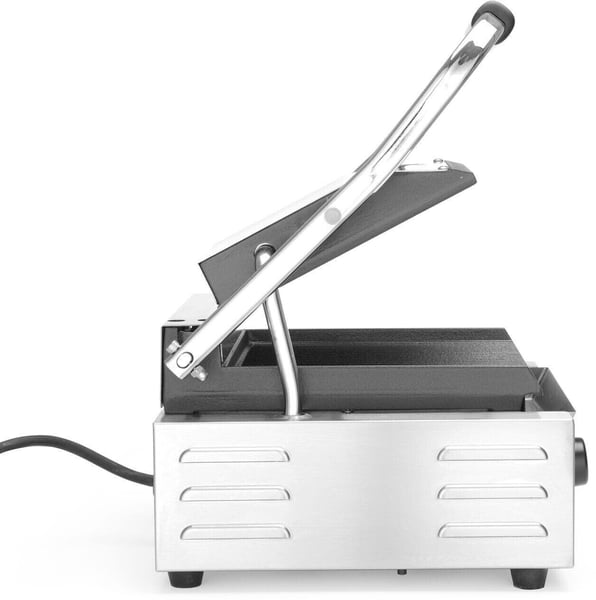 Контактний гриль (притискний гриль) представляє, мабуть, найуніверсальніше теплове електричне обладнання для фаст-фуд, точок швидкого харчування, кафе та фуд-кортів. Електричний однопостовий контактний гриль використовують для приготування та смаження широкого спектру продуктів: для смаження м'ясних, рибних та овочевих страв без використання посуду. Ці апарати також називають panini, у перекладі з італійської означає "гарячий бутерброд". Принцип роботи притискного гриля полягає в тому, що обсмажування продукту відбувається одночасно з двох сторін, що вдвічі скорочує час приготування. Рекомендований для оснащення невеликих закусочних, снек-барів, закладів фаст-фуду, де швидко відбувається розігрів та обсмажування гамбургерів, сосисок, тостів, а також можна використовувати для підігріву донер-кебабів, шаурми, паніні. В обидві частини гриля вбудовані теплові елементи, що щільно прилягають до продукту, тому процес приготування протікає дуже швидко.