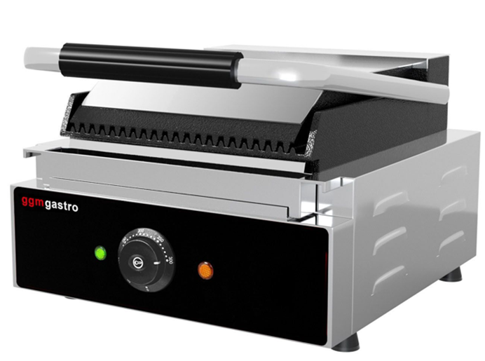Однопостовий гриль контактний використовують для приготування та смаження широкого спектру продуктів, він призначений для смаження м'ясних, рибних та овочевих страв без використання посуду. Ці апарати також називають panini, у перекладі з італійської означає "гарячий бутерброд". Принцип роботи притискного гриля полягає в тому, що обсмажування продукту відбувається одночасно з двох сторін, що вдвічі скорочує час приготування. Рекомендований для оснащення невеликих закусочних, снек-барів, закладів фаст-фуду, де швидко відбувається розігрів та обсмажування гамбургерів, сосисок, тостів, а також можна використовувати для підігріву донер-кебабів, шаурми, паніні.