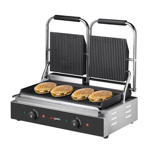 Двопостовий гриль контактний використовують для приготування та смаження широкого спектру продуктів, він призначений для смаження м'ясних, рибних та овочевих страв без використання посуду. Ці апарати також називають panini, у перекладі з італійської означає "гарячий бутерброд". Принцип роботи притискного гриля полягає в тому, що обсмажування продукту відбувається одночасно з двох сторін, що вдвічі скорочує час приготування. Рекомендований для оснащення невеликих закусочних, снек-барів, закладів фаст-фуду, де швидко відбувається розігрів та обсмажування гамбургерів, сосисок, тостів, а також можна використовувати для підігріву донер-кебабів, шаурми, паніні.