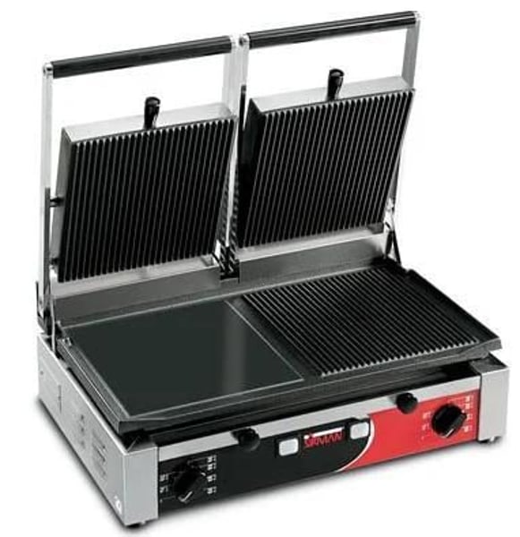 Професійний притискний гриль, завдяки регульованому термостату температури 0÷300 °C, дозволяє швидко приготувати сендвічі різної складної начинки, гарячі бутерброди, овочі-гриль, підсмажити тости і сосиски хот-дог.