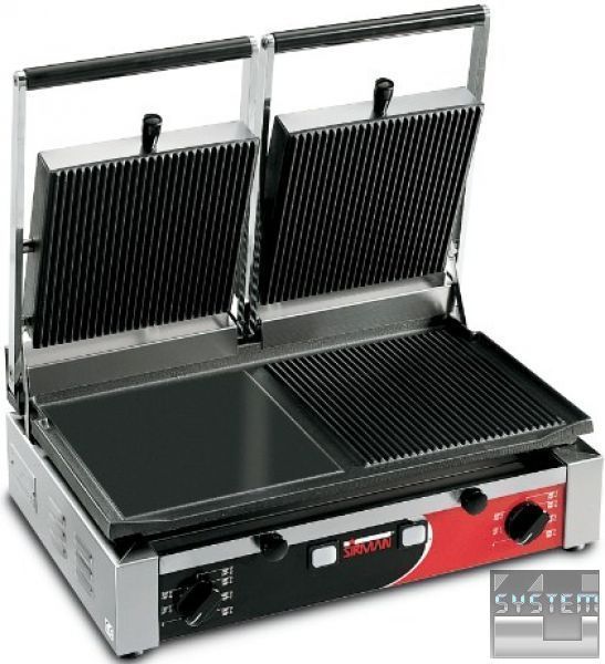 - 2 регулируемых термостата до 300 °C., которые позволяют использовать отдельно две половины гриля.