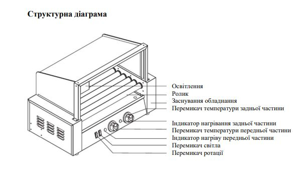 Незамінний у точках фаст-фуду, кафе, барах, ресторанах, готелях, торгових центрах, супермаркетах, місцях з великим потоком відвідувачів та на підприємствах громадського харчування та торгівлі. Обладнання має 5 роликів, що обертаються, які виконані з високоякісної нержавіючої сталі. Високоефективний нагрівальний елемент потужністю 0,96 кВт забезпечує швидке приготування продуктів, а вбудований терморегулятор з діапозоном від 50 до 300 °С дозволяє досягти оптимального ступеня готовності.