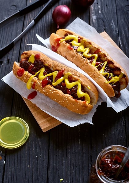 Часто роликові грилі застосовуються для обсмажування сосисок у комбінації з притискними контактними грилями, якими підігрівають булочку для отримання хрусткої скоринки та надання хот-догу апетитної форми.
