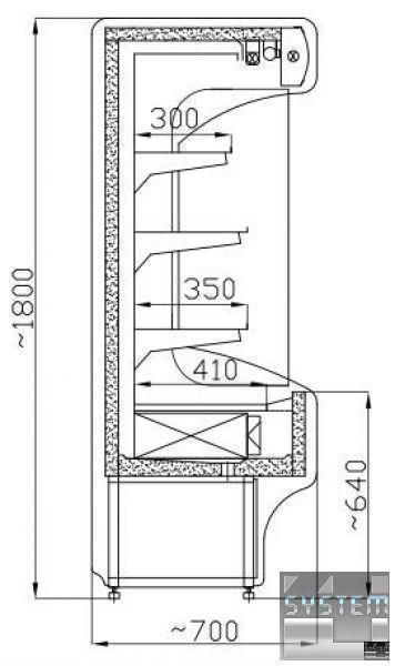 Пристінна холодильна вітрина призначена для вертикальної презентації та продажу продуктів у магазинах із системою самообслуговування. Є стелажі, що охолоджуються, призначені для викладки, показу різних харчових продуктів споживачеві та їх зберігання.