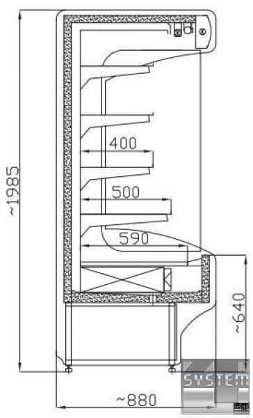 Пристінна холодильна вітрина призначена для вертикальної презентації та продажу продуктів у магазинах із системою самообслуговування. Є стелажі, що охолоджуються, призначені для викладки, показу різних харчових продуктів споживачеві та їх зберігання.