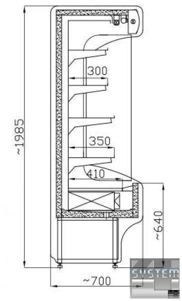 Пристінна холодильна вітрина призначена для вертикальної презентації та продажу продуктів у магазинах із системою самообслуговування. Є стелажі, що охолоджуються, призначені для викладки, показу різних харчових продуктів споживачеві та їх зберігання.