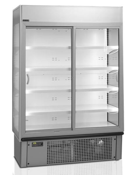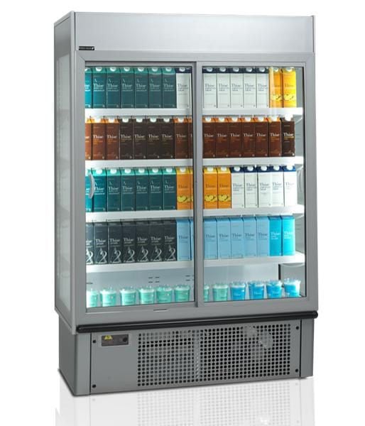 Вітрина з розсувними скляними дверима має на 30% більше обсягу на полицях, ніж відкрита вітрина MD, а споживання електронергії в цих модифікаціях на 50% нижче.